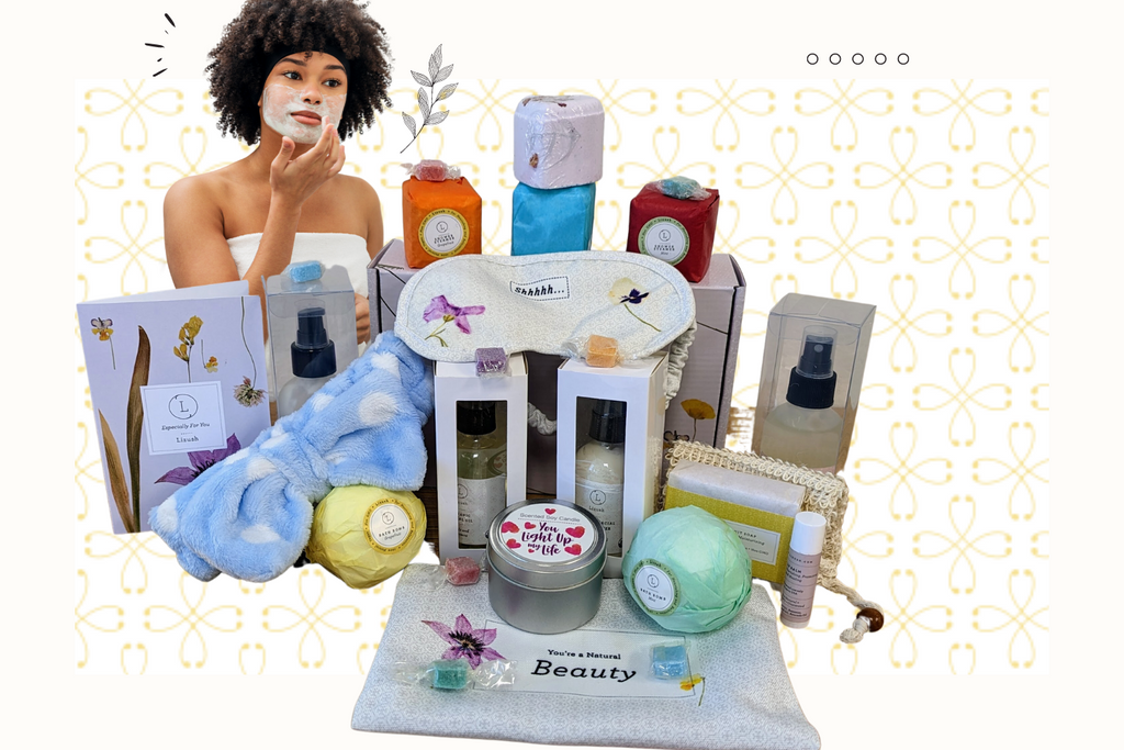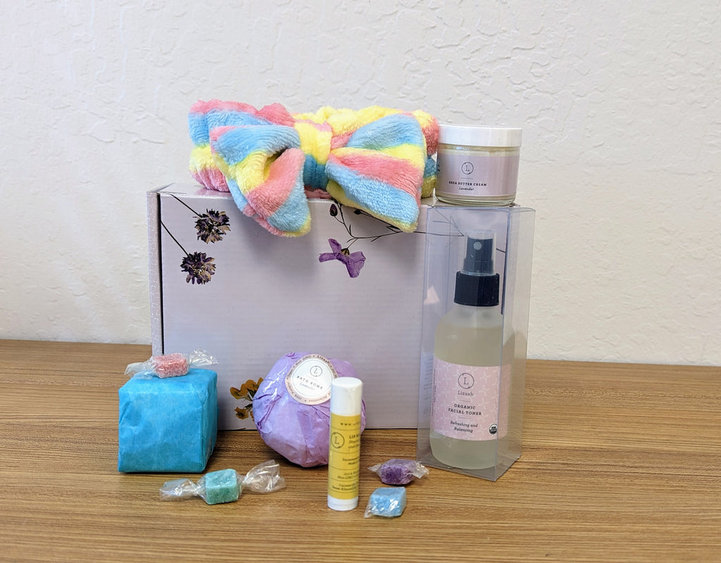 Enjoy Organic facial care and all-natural bath and body self-care products for Teens like facial cleanser, moisturizer, toner, and oil, Shower steamers, Body scrubs, and Bath salts (ALL FULL SIZE).